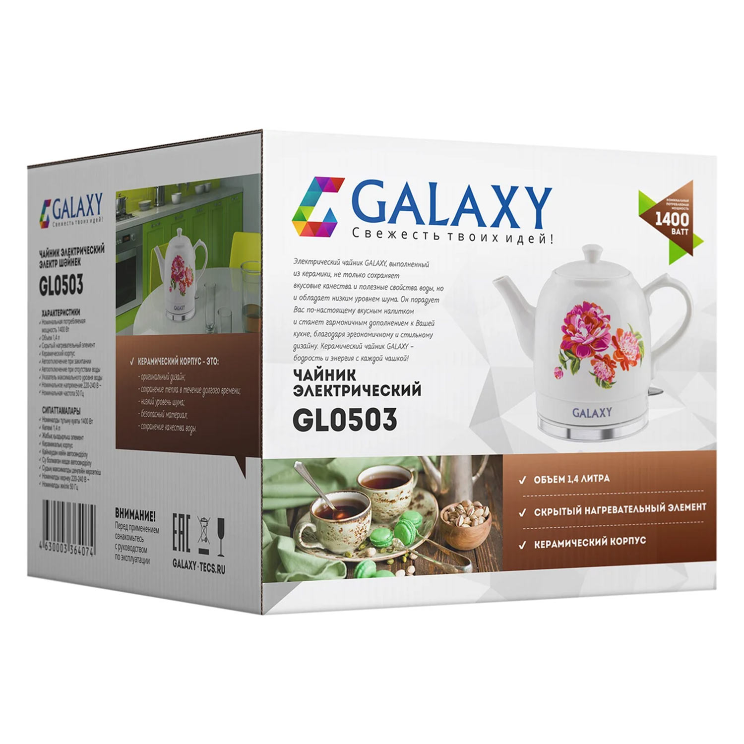 Эл.чайник GL0503 Galaxy 1400Вт, 1,4л, белый