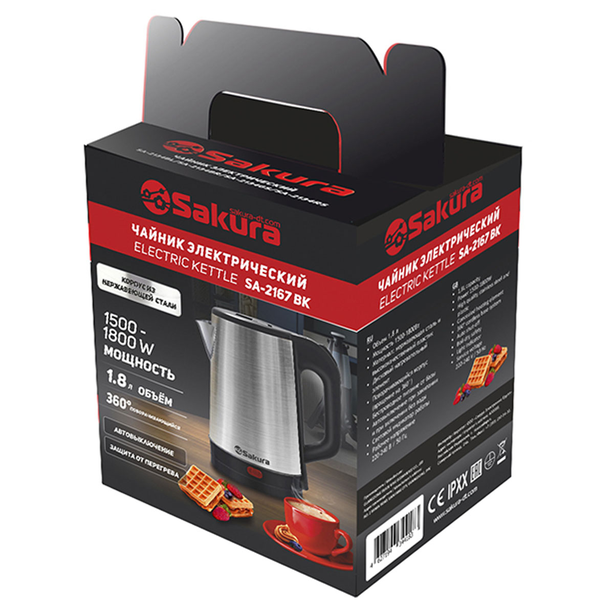Чайник эл. SAKURA SA-2167BK, 1,8л,1800Вт,нерж, черн