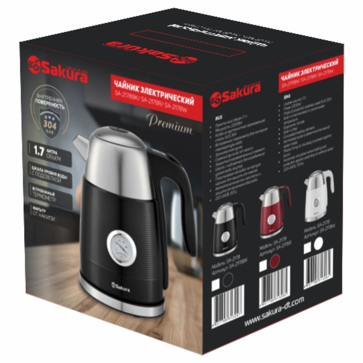 -Эл.чайник SA-2178BK 1,7л Premium нерж