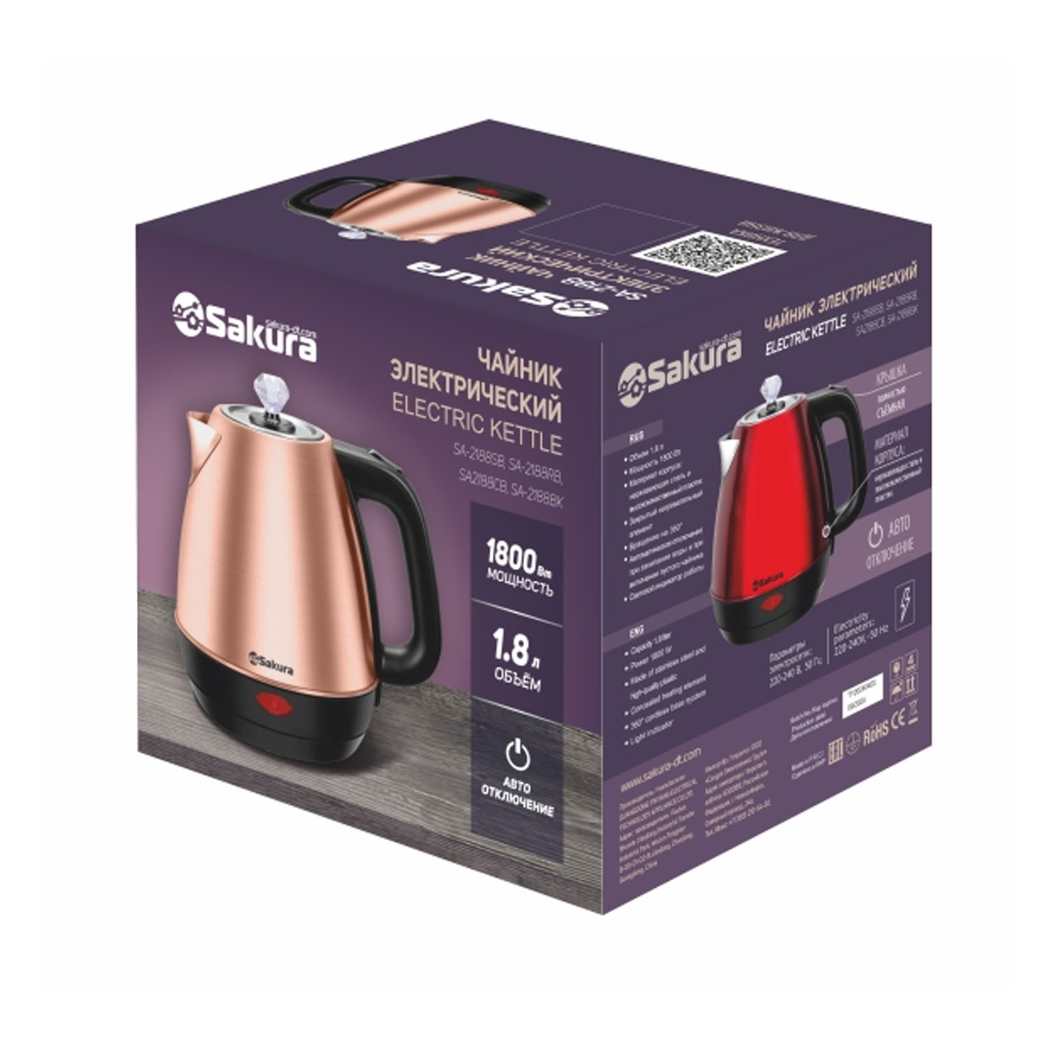 Эл.чайник 1,8л SA-2188RB красн/черн