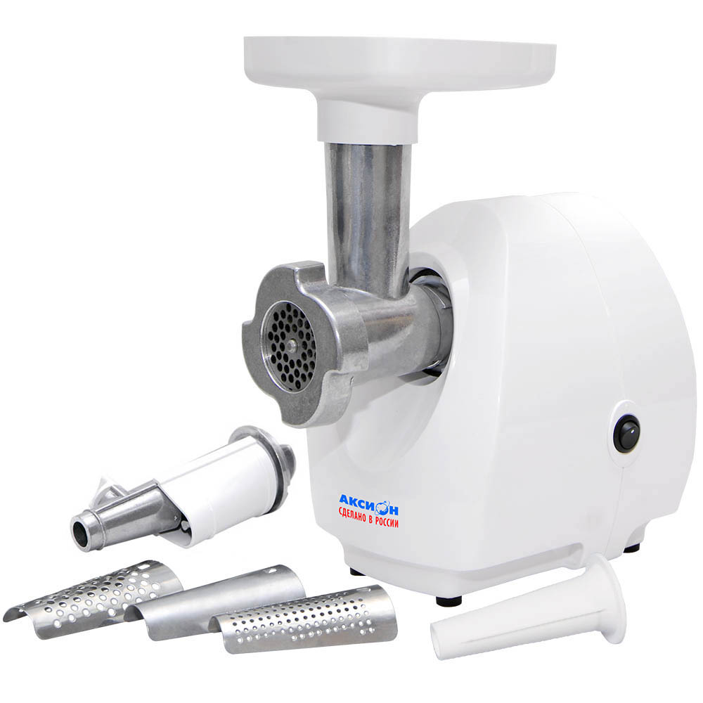 Мясорубка эл. АКСИОН М25.04, 1500Вт, 100кг/ч, соковыжималка, приставка д/колбас, 2 решетки, лоток, защита от перегрузки, белый