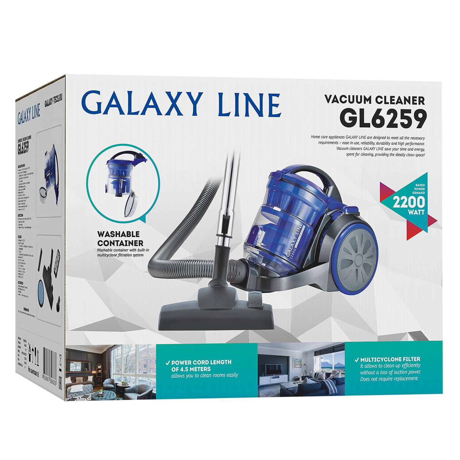 Пылесос Galaxy LINE GL6259 2200Вт, 2л, 3насадки, синий
