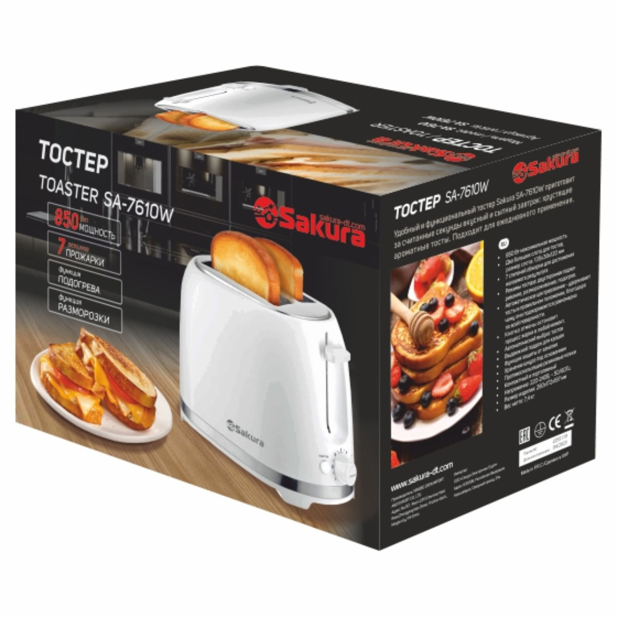Тостер эл. SAKURA SA-7610W, 850Вт, белый