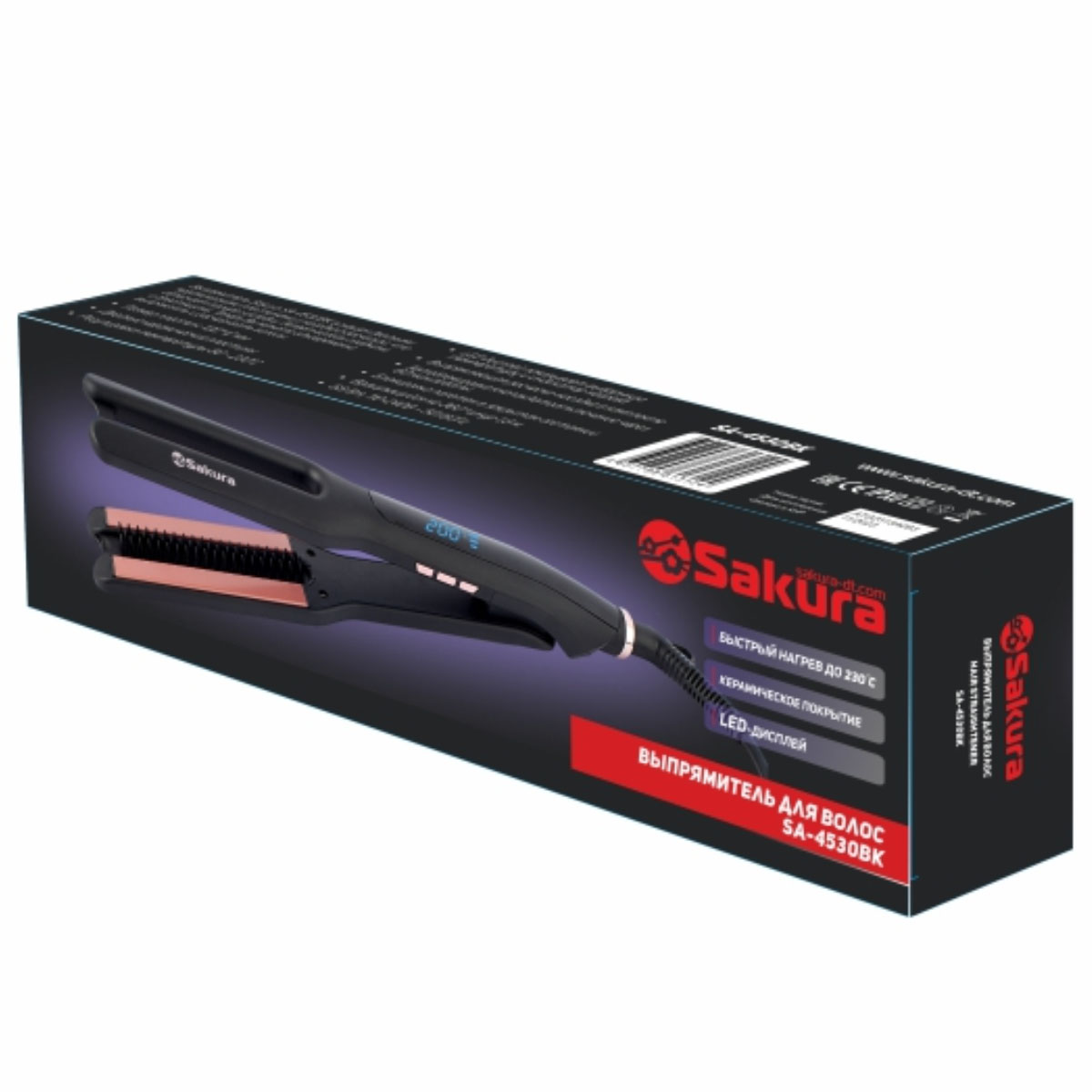 Выпрямитель SA-4530BK 68Вт 16 темп.реж. LED, расческа-насадка, керам.пластины SAKURA