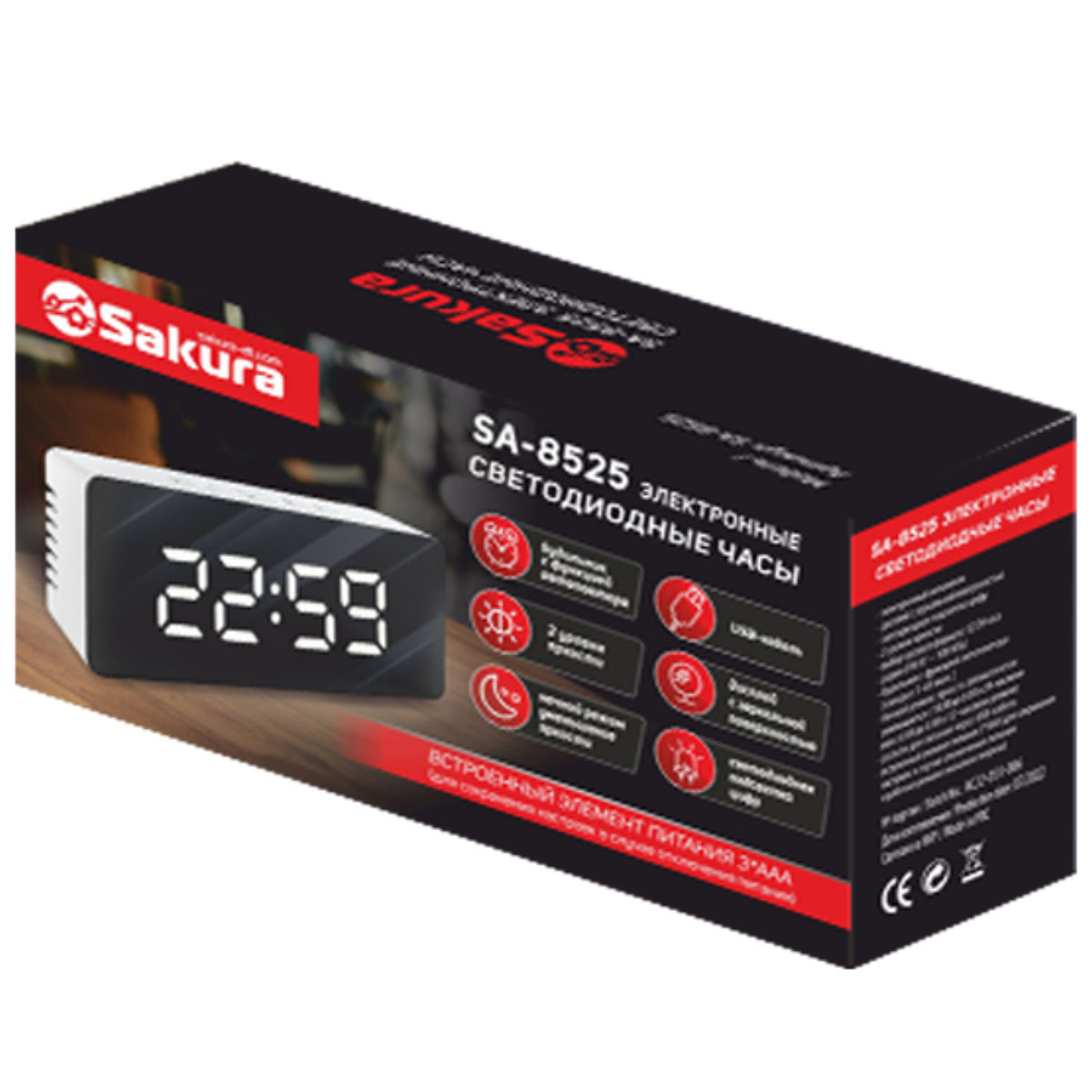 -Часы электронные SA-8525 светодиод,зерк.дисплей,будильник