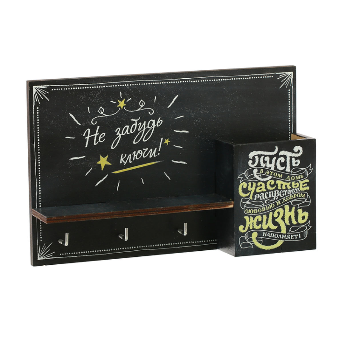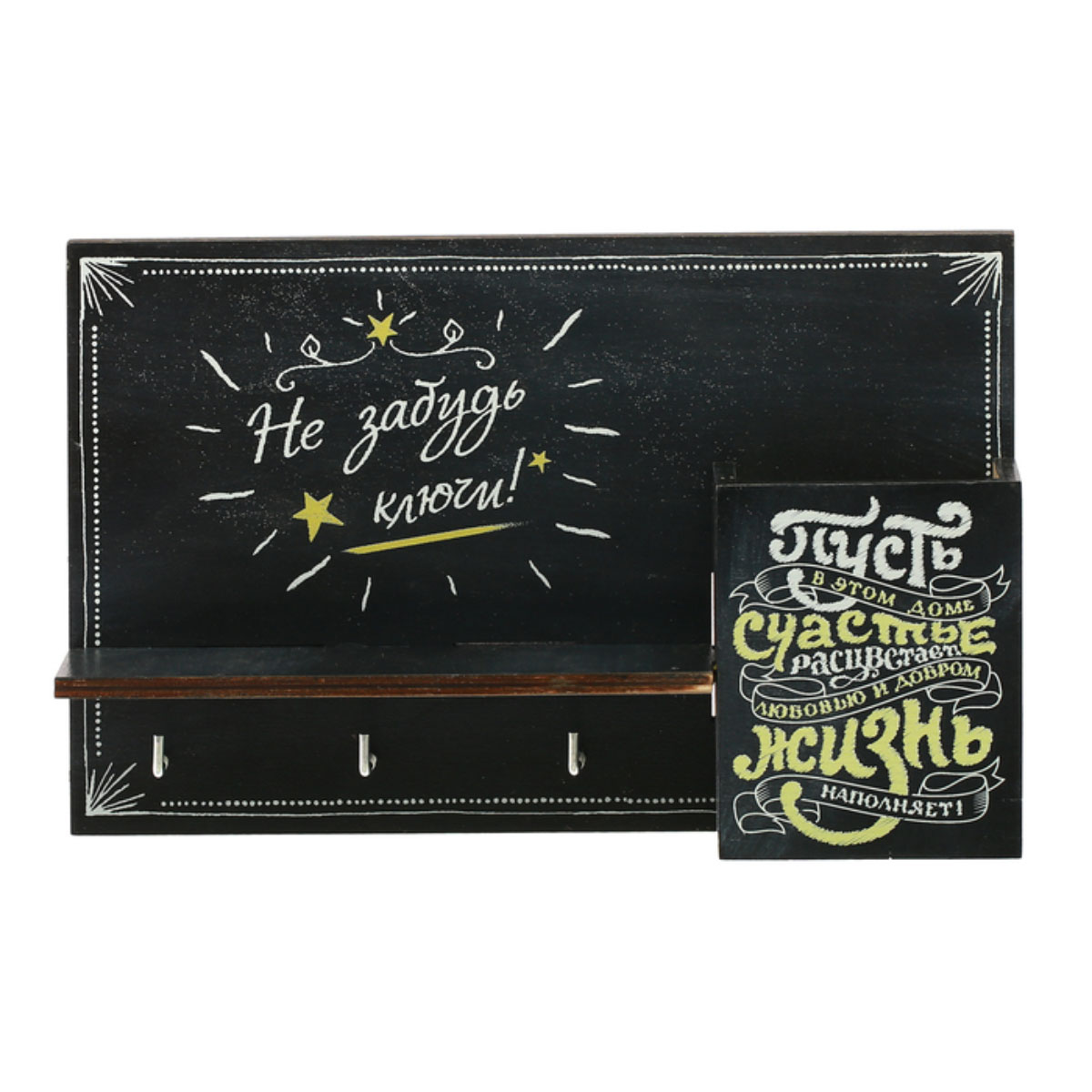 Ключница  3040013, деревянная с полкой и карманом  "Меловая доска"