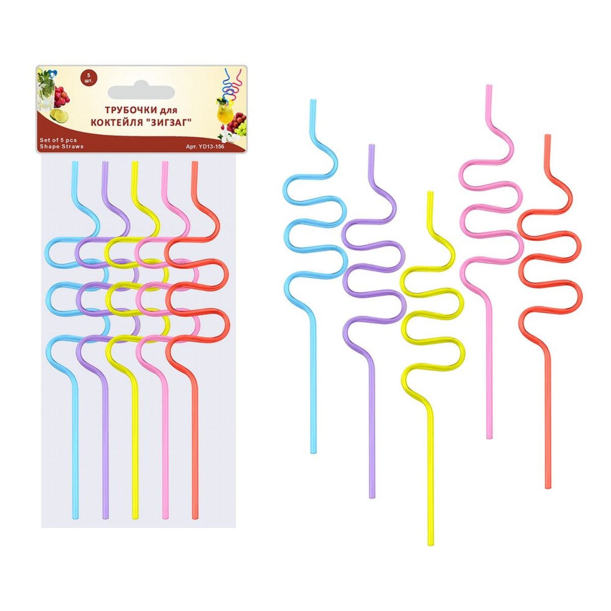 -Трубочки д/коктейля YD13-156 Зигзаг 5шт. 26см