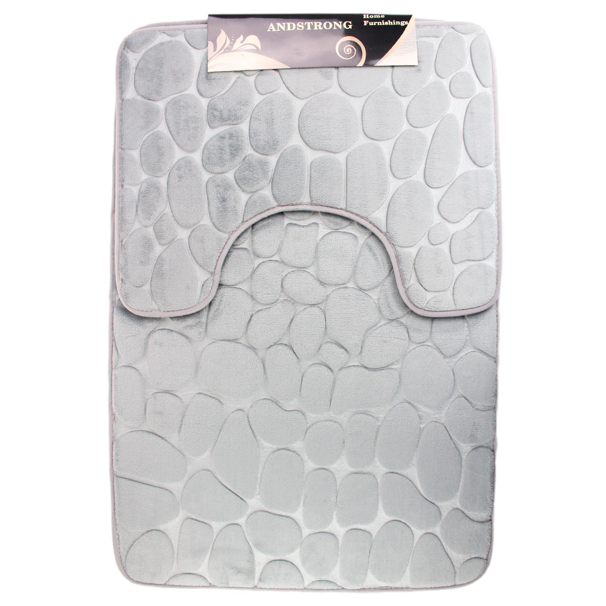 Набор ковриков для ванной и туалета 2шт HTPOLK13 камни 60*90/50*40см, полиэстер, св.серый