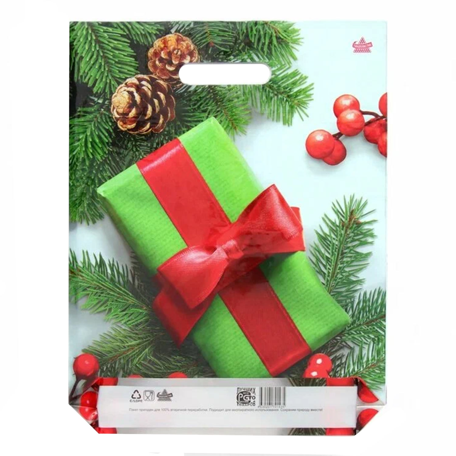 Пакет НГ пласт.руч.40*44 100мкм Новогодний блеск ПВД ТИКО