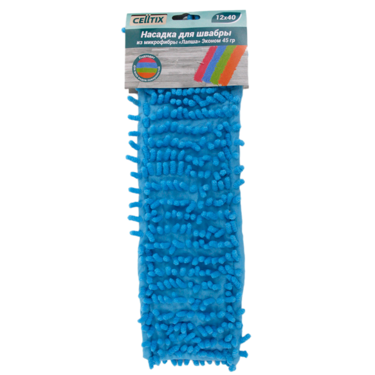Насадка для швабры МОП плоская, микрофибра, 12*40см, 45гр, лапша, карманы, Е1М CELLTIX