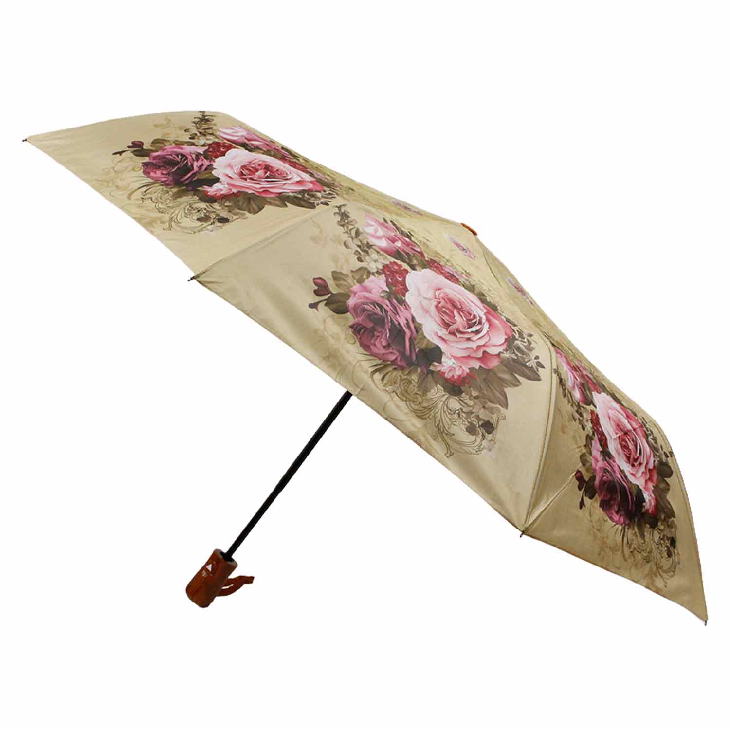 -Зонт HTDMYR45 Роза на бежевом п/автомат D=108см раздв. стержень полипропилен
