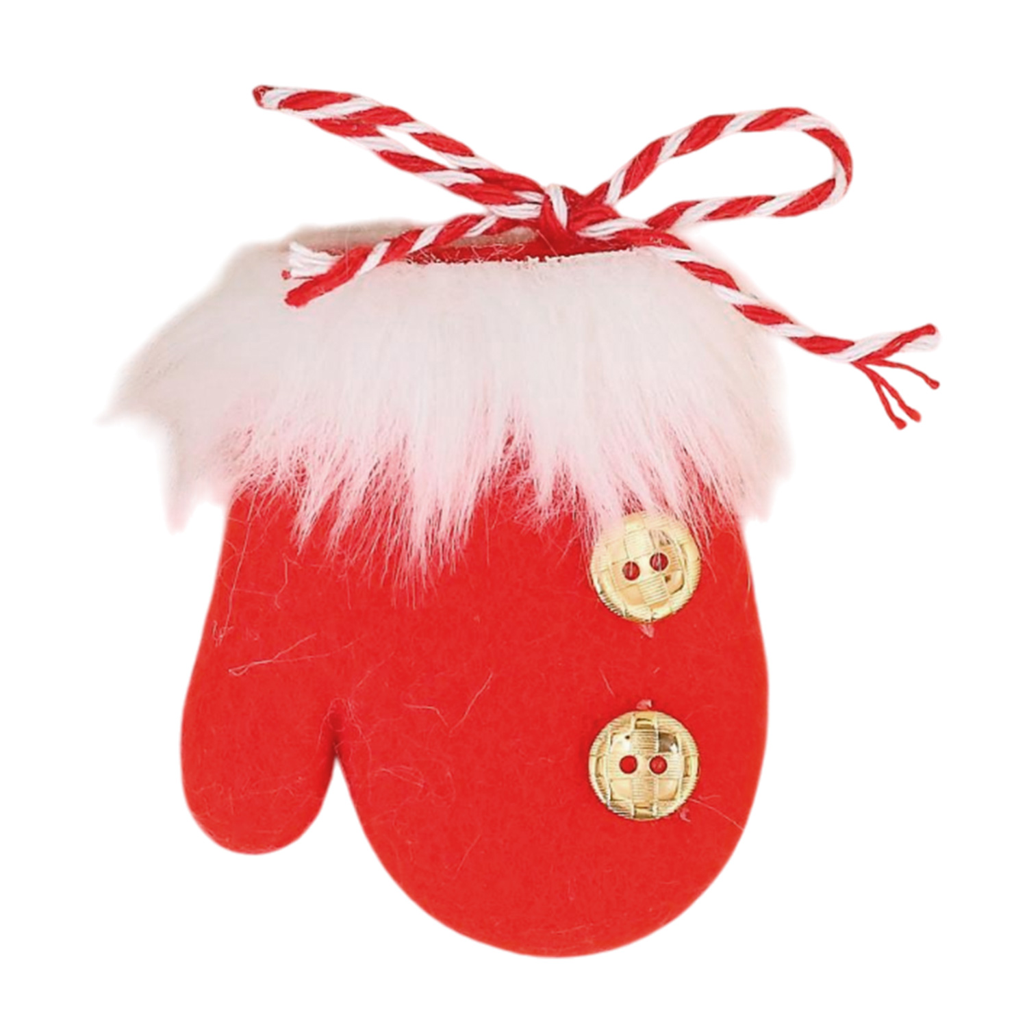 Нов.игр.1381156 Подвеска мягкая Варежка пушистая с пуговками 7,5*6см бело-красный