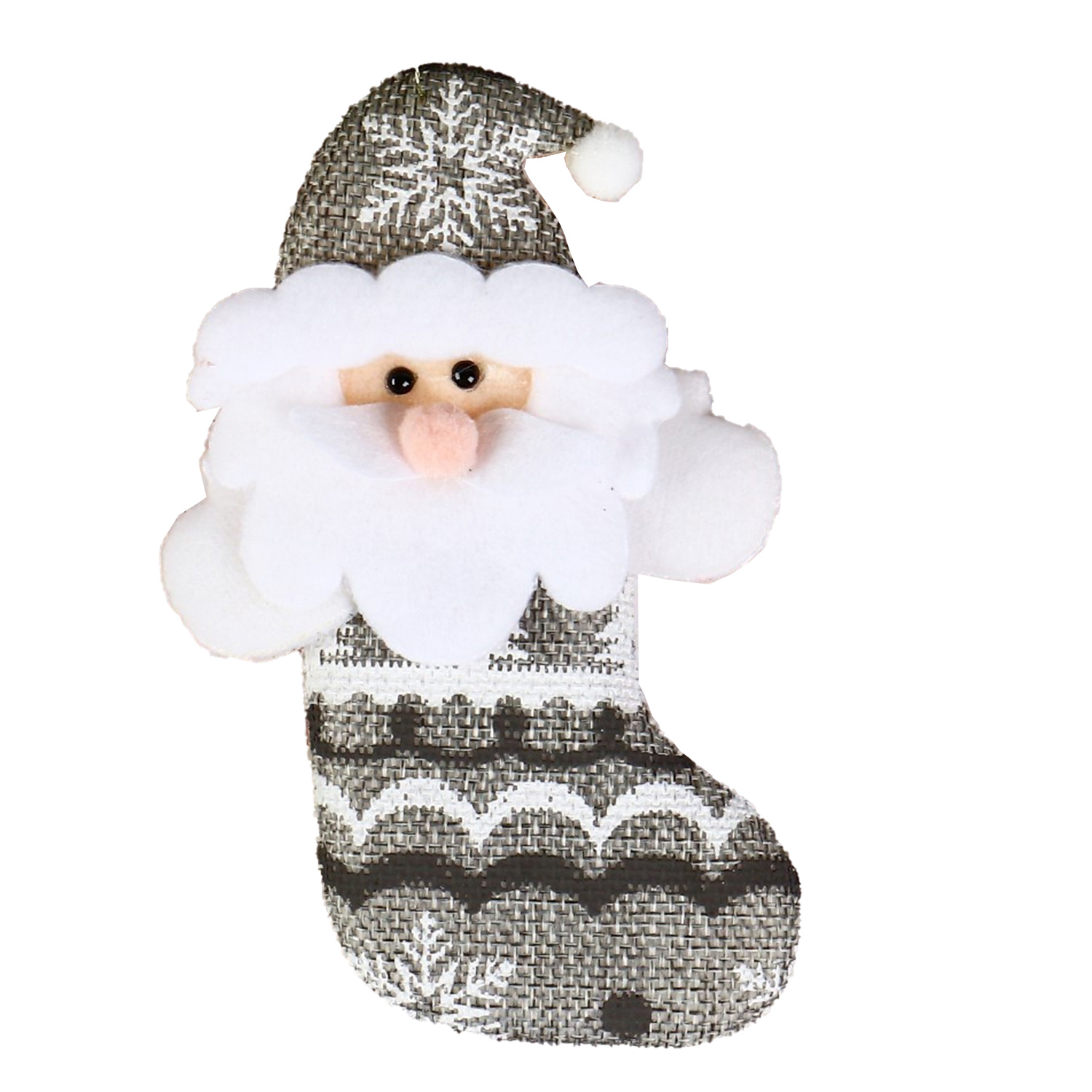Нов.игр.9692673 Подвеска мягкая Дед Мороз в костюмчике с орнаментом лес в носке 7*13см серый