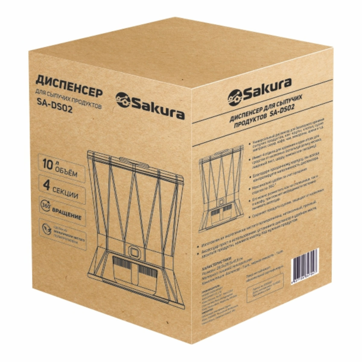 Диспенсер для сыпучих продуктов п/м SAKURA SA-DS02, 4 секции,вращающийся,объем диспенсера:    10 л