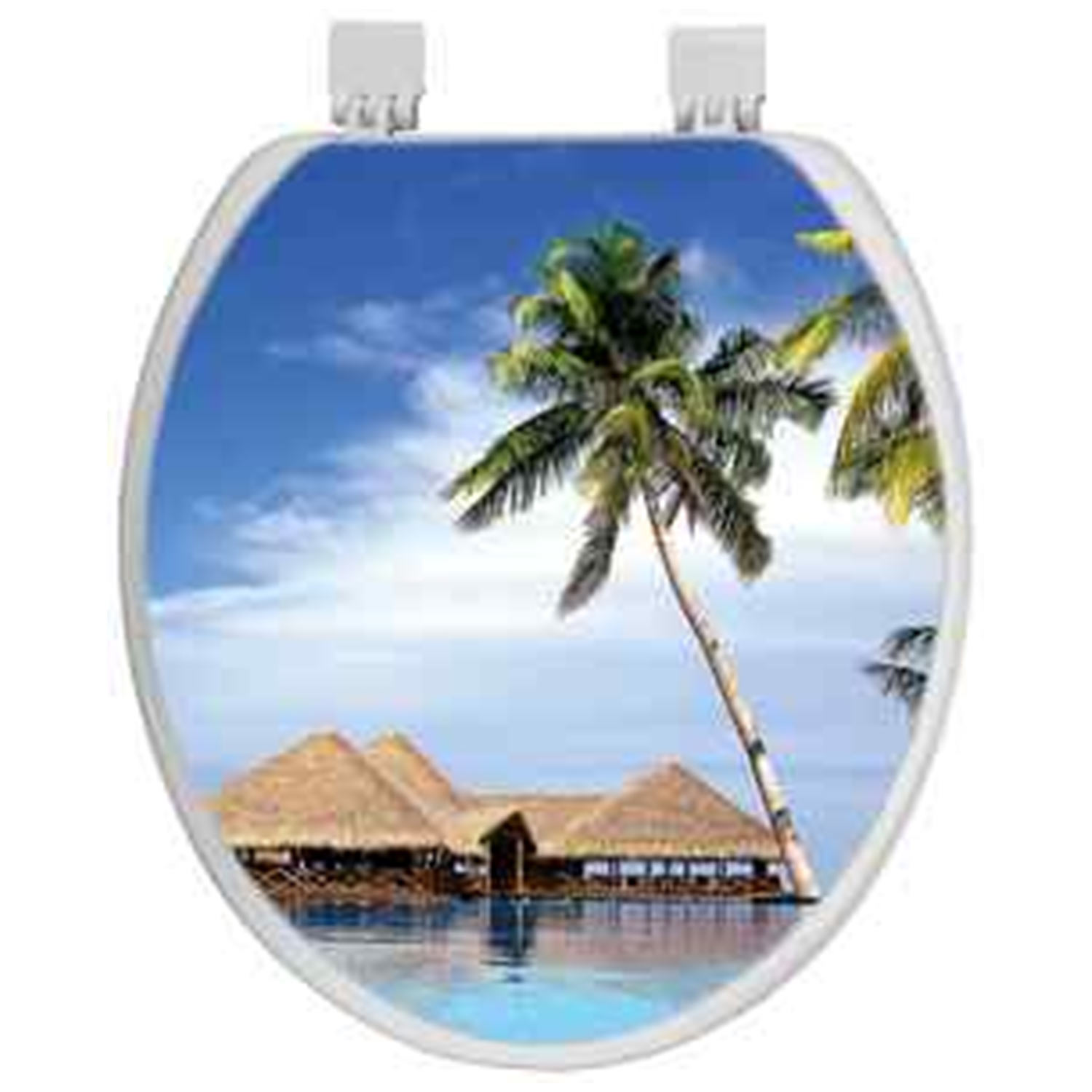 Сиденье для унитаза мягкое "ОКЕАН" бел. с/рис. Пальма у домиков 103-311-01-В4