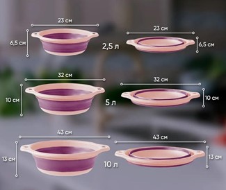 -Набор тазов 3шт (2,5;5;10л) складные розовые