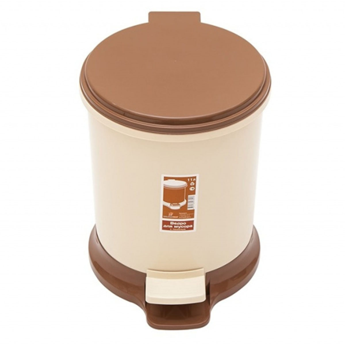 -Ведро д/мусора 11л бежевый с педалью Элластик 4