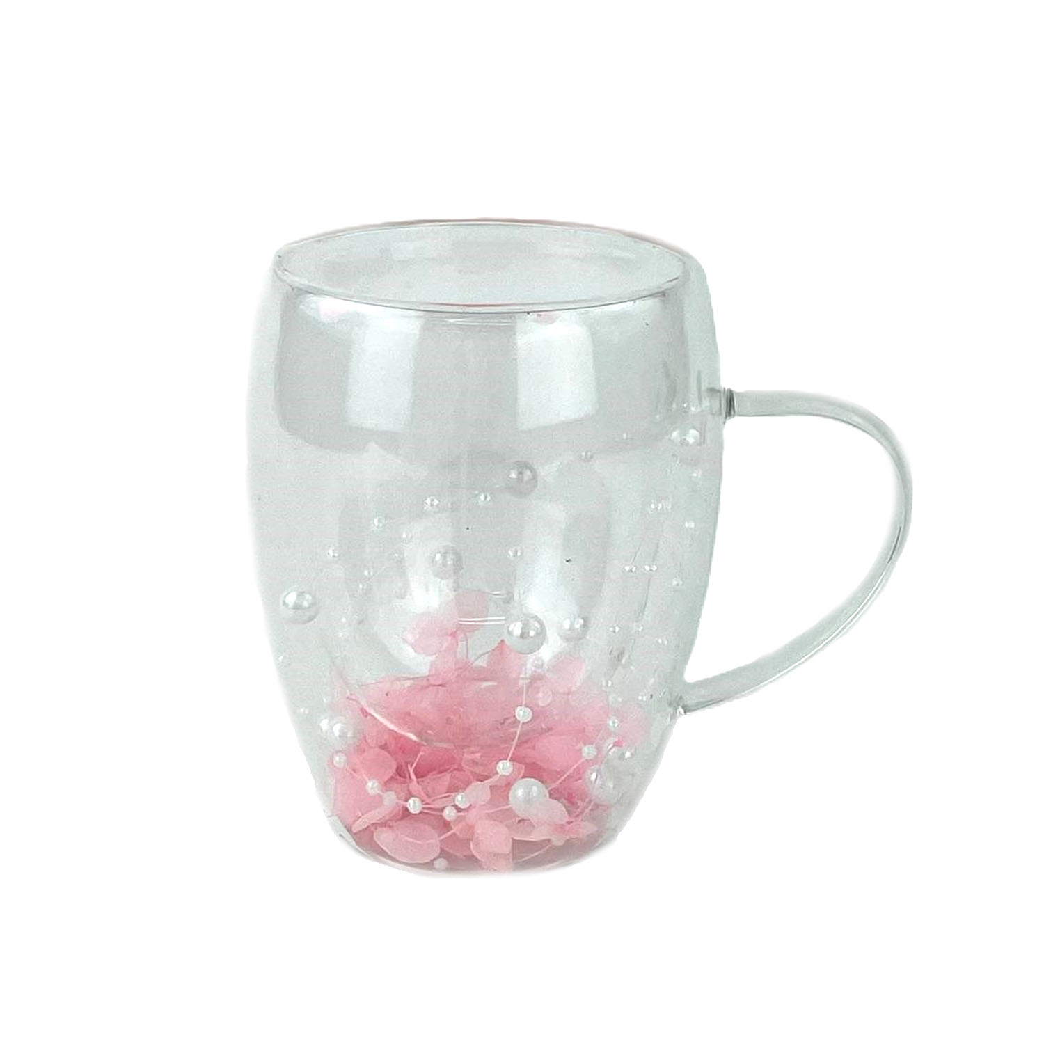 Кружка с двойными стенками MFK21205 с цветами и бусинами розовая 350 мл