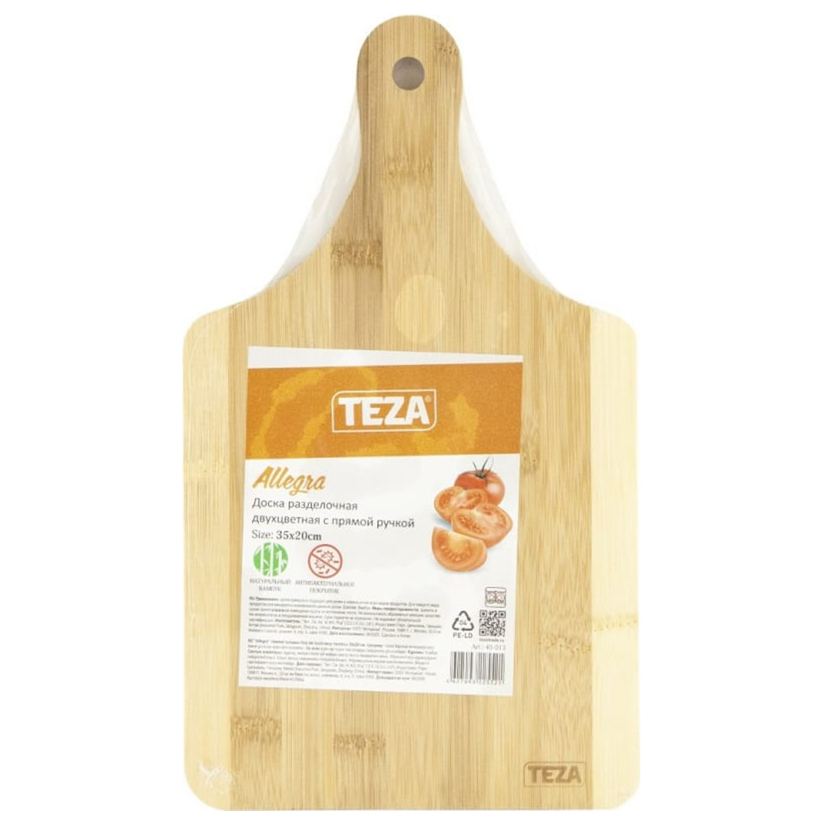 Доска разд Allegra 35*20*1,5см двухцветная с прямой ручкой бамбук 40-013