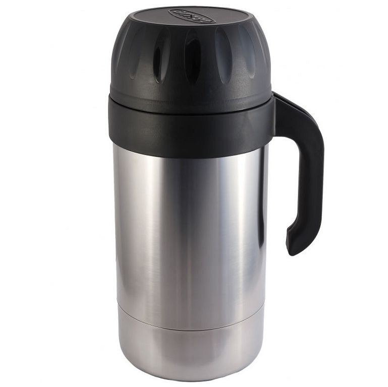 Корпус выполнен из прочной нержавеющей стали AISI 304, которая не подвержена коррозии и не влияет на вкус содержимого. Благодаря узкому горлу с носиком напитки легко разливаются, а крышка-чашка и удобная Г-образная ручка обеспечивают дополнительный комфорт в использовании. Термос сохраняет тепло до 24 часов.