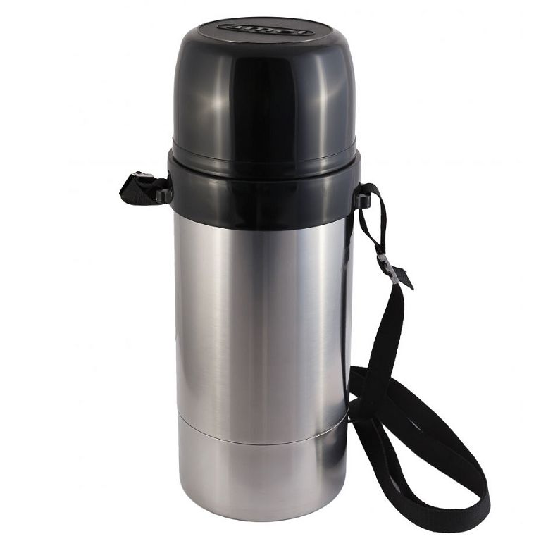 Термос нерж. Амет "Дорожный" 1С672, вм. 1,5л., пробка двойная, винтовая, универсальное горло, на ремне