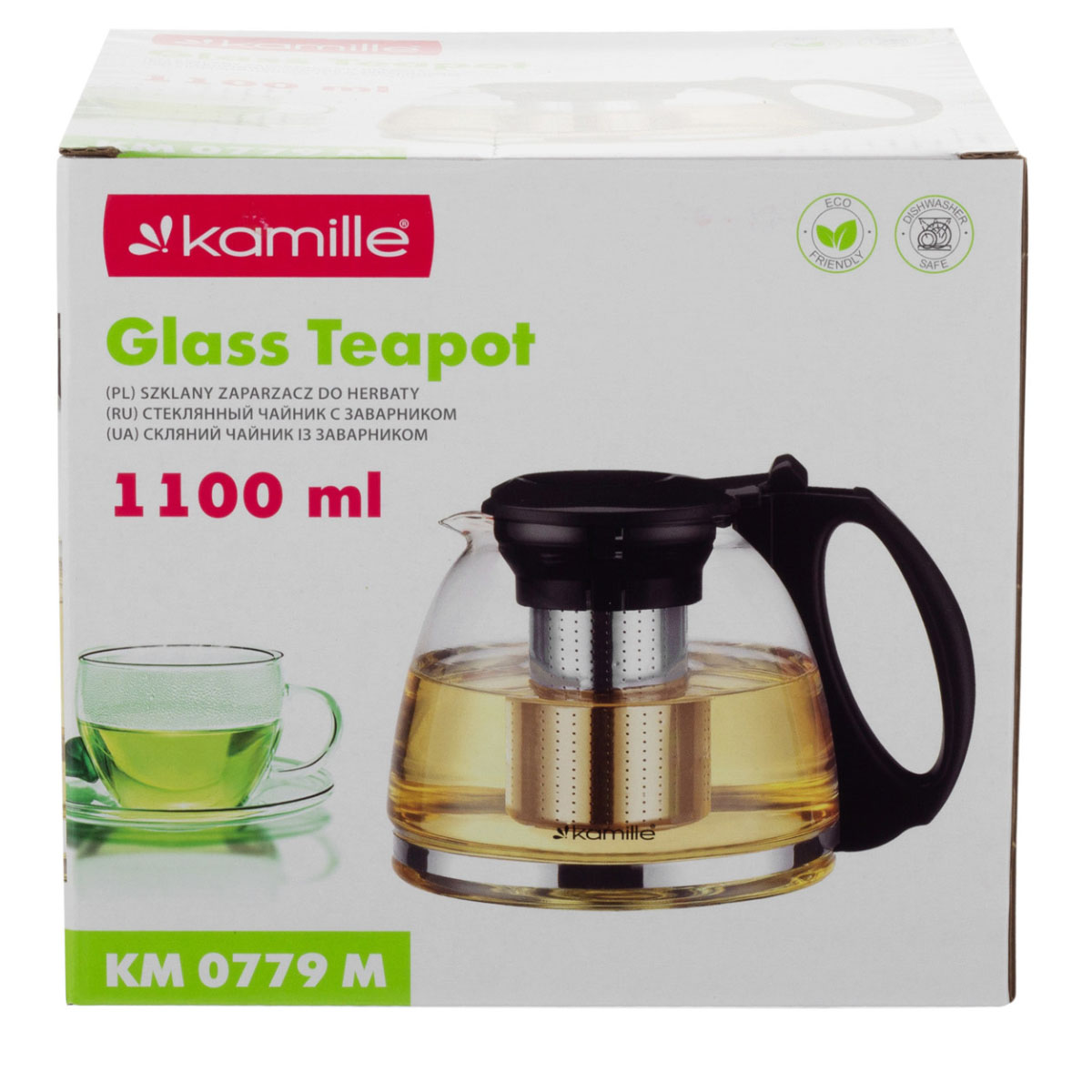 Чайник заварочный стекл. Kamille 0779M, 1100мл со съемным ситечком (стекло,нерж.сталь)