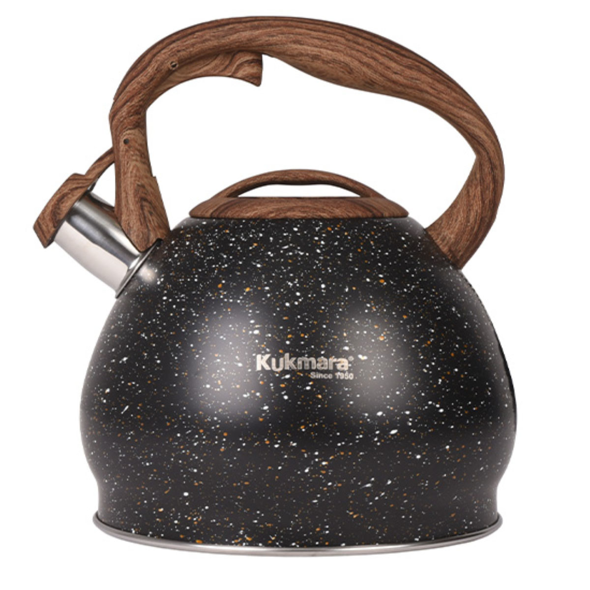 Элегантный и практичный чайник Kukmara "Black" объёмом 3,4 литра — это идеальный выбор для тех, кто ценит надёжность и эстетику. Внешнее покрытие с эффектом чёрного мрамора придаёт ему солидный и современный вид, который прекрасно впишется в любую кухню. Удобный свисток сообщит о закипании воды, а термостойкая ручка обеспечит комфорт и безопасность при использовании.