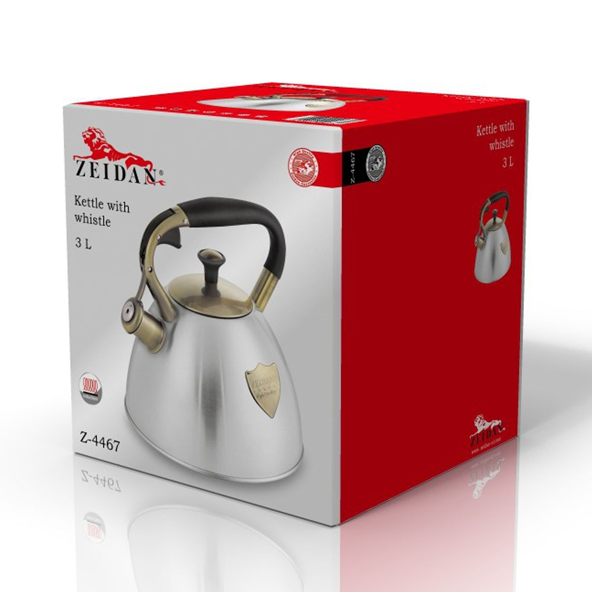 Чайник нерж. ZEIDAN Z-4467, c/c 3л., капс.индукц. дно, курк.механизм, фиксир.комбинир.ручка, декор.элем.под бронзу п/у