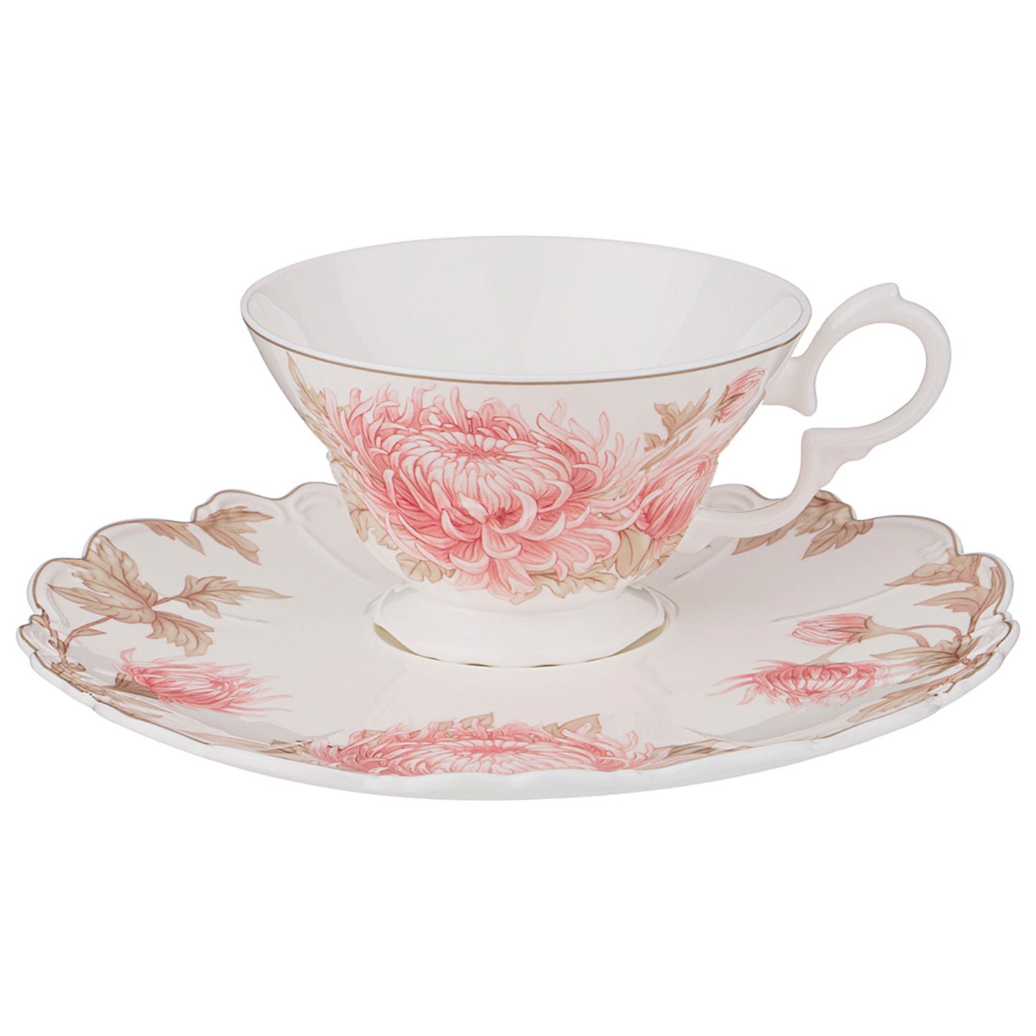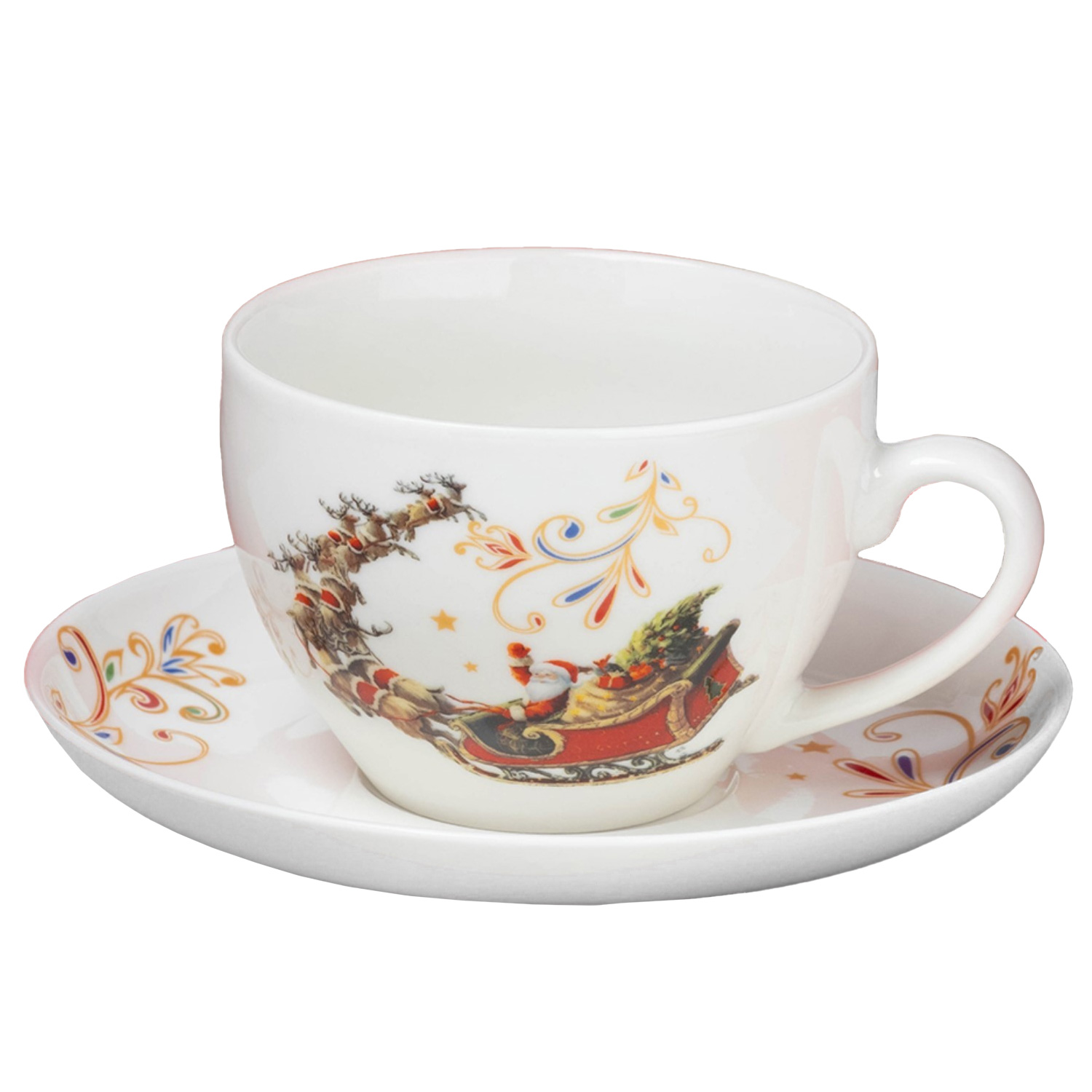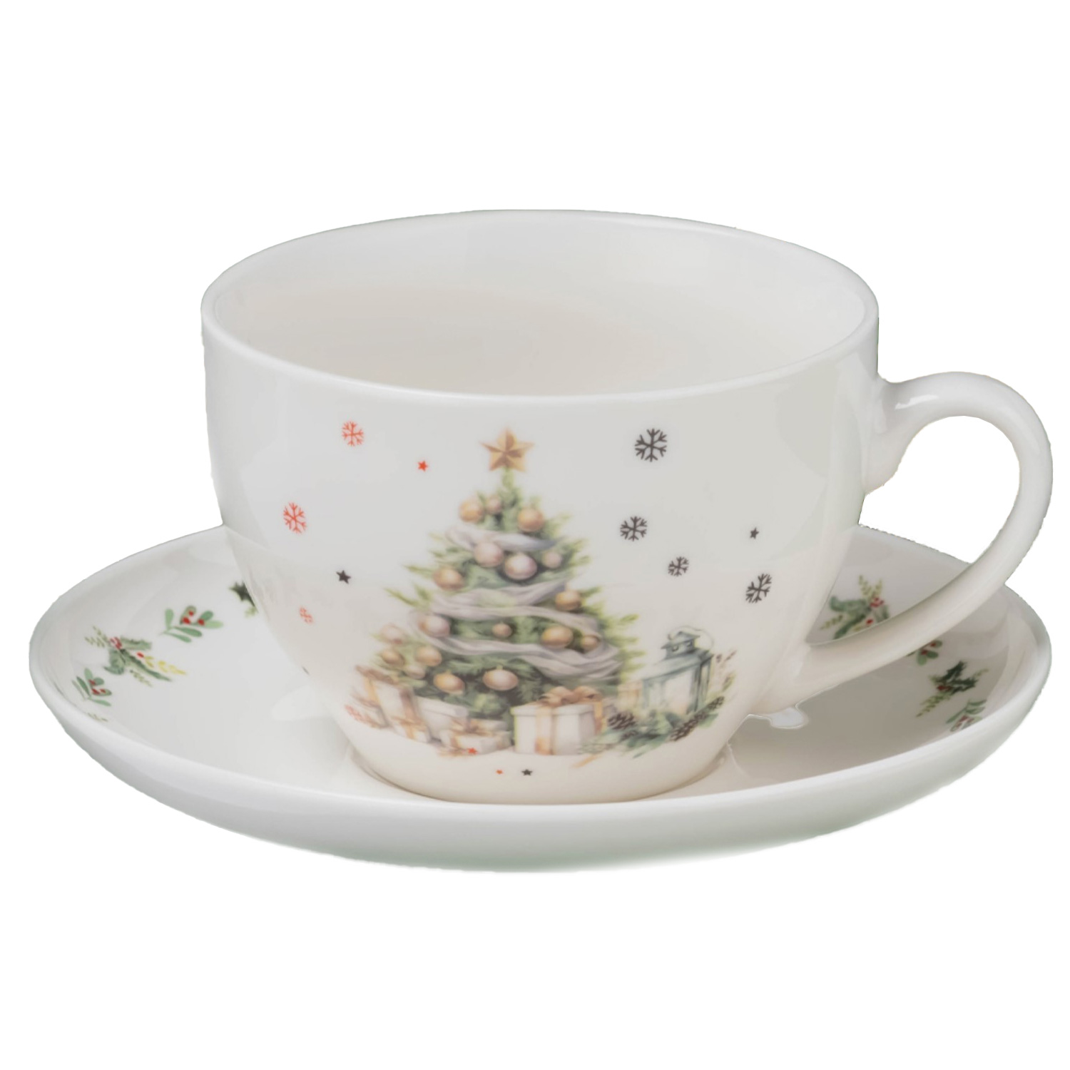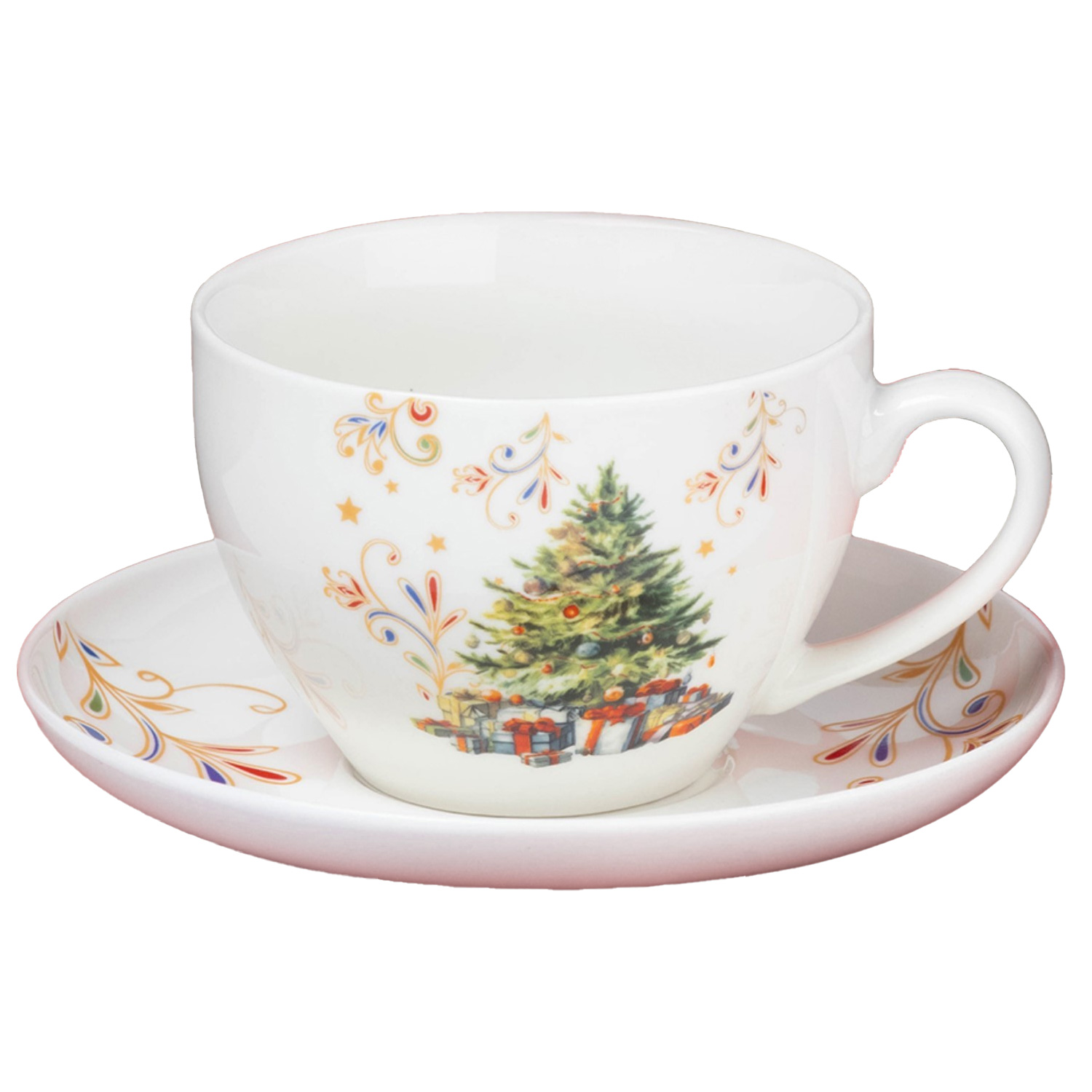 Пара чайная 10338037 Доляна «Ель» НГ 2 предмета (чашка 210 мл, блюдце d=15 см, фарфор, цвет белый)