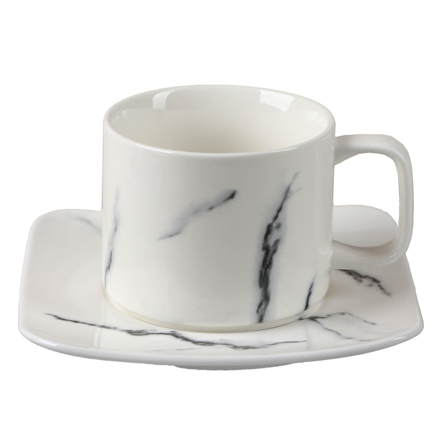 Пара чайная 4721575 "Мрамор" чашка 220 мл 11*8,5*6,7см, блюдце 14х1,5 см, цвет белый