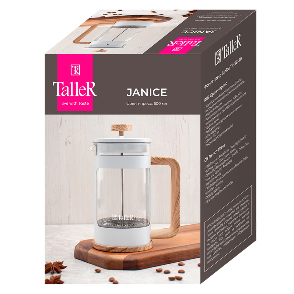 Закажите френч-пресс TalleR TR-32340 "Дженис» прямо сейчас и наслаждайтесь настоящим вкусом любимых напитков в любое время! Доставка по всей России.
