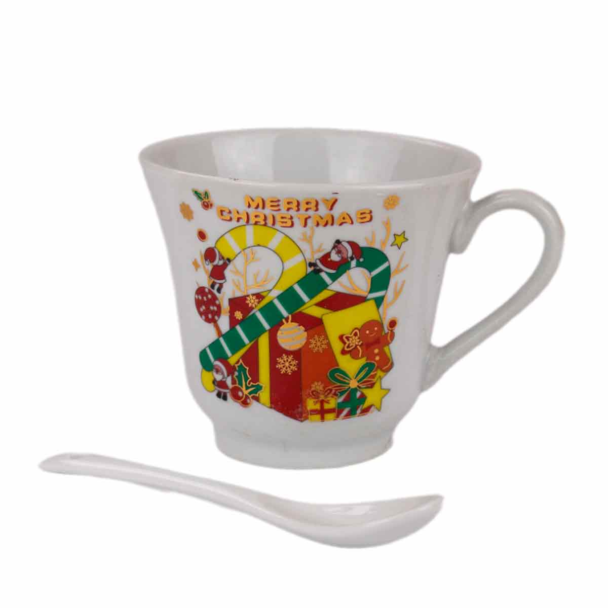 Кружка 230мл HTH047 подарочная в ассорт., с ложкой НГ, керамика