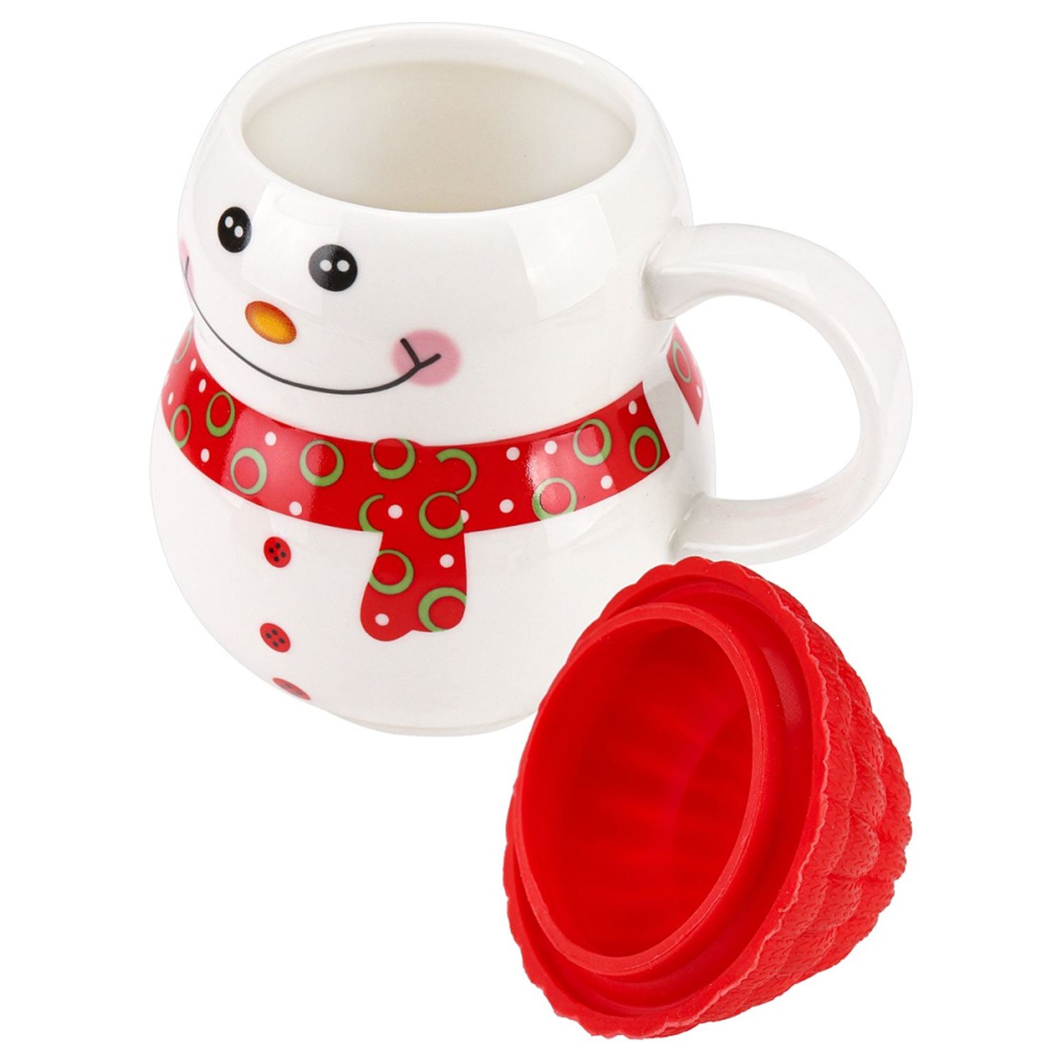 -Кружка Новогодняя 300мл КС-2674 с ложечкой и крышкой "Снеговик" красная