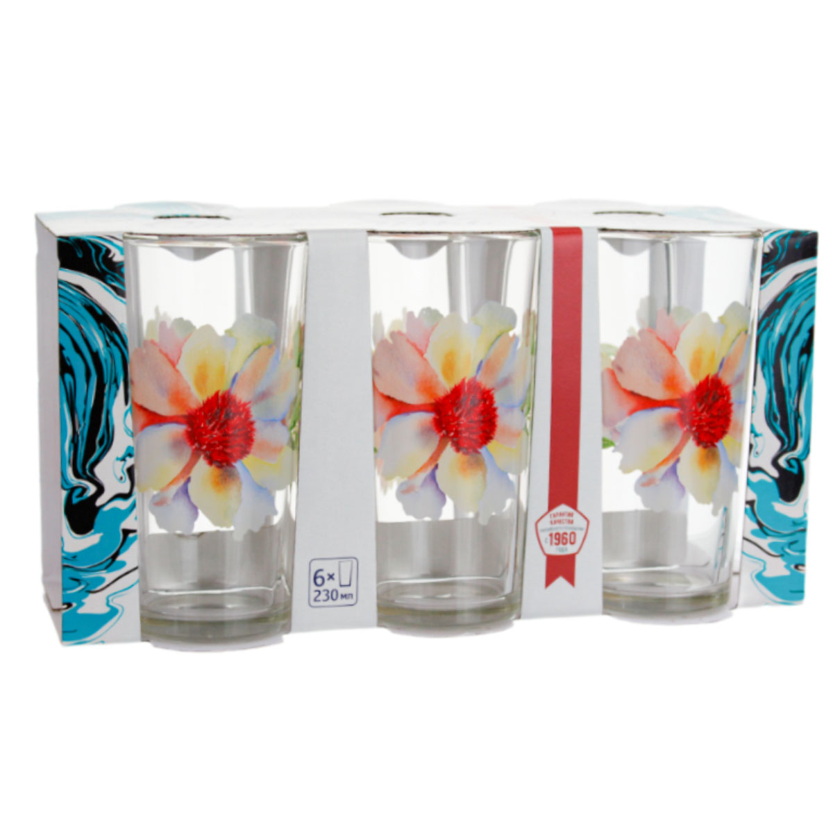Наб.стаканов с1256 Ода Акварельные цветы 6шт 230мл