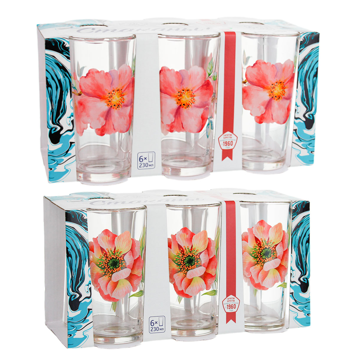 -Наб.стаканов с1256 Ода Акварельные цветы 6шт 230мл