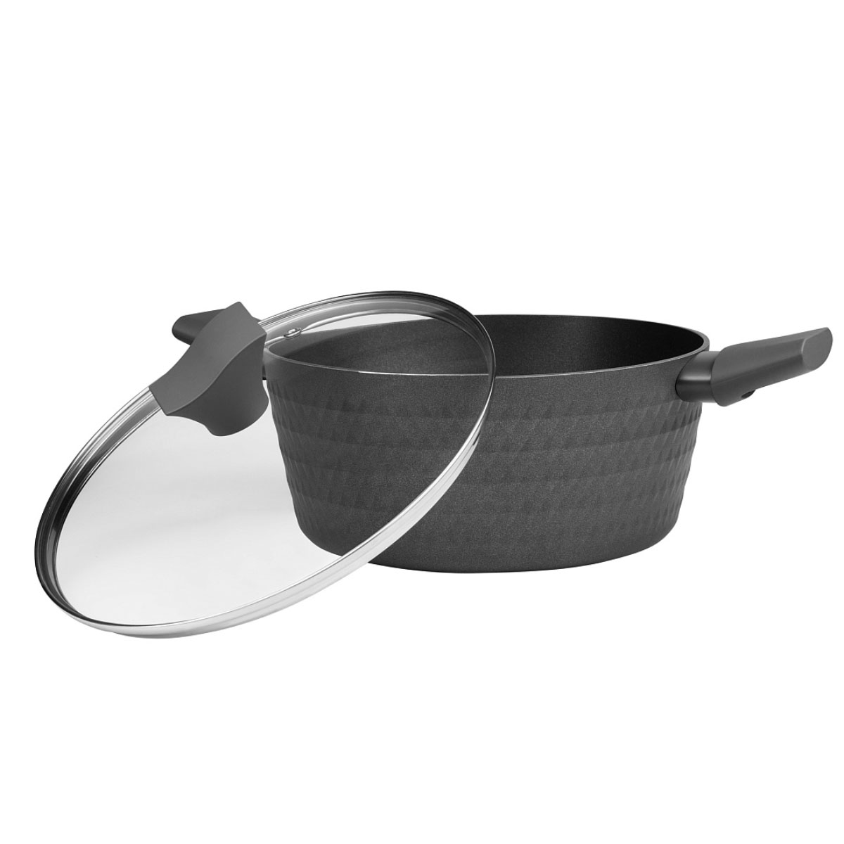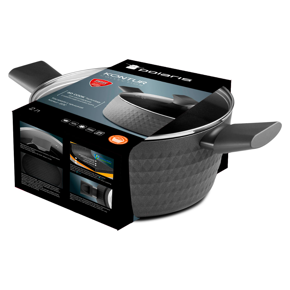 Кастрюля кованый алюминий POLARIS Kontur-20C, 2,0л,двухслойное высокопрочное утолщенное антипригарное покрытие Pfluon., серый