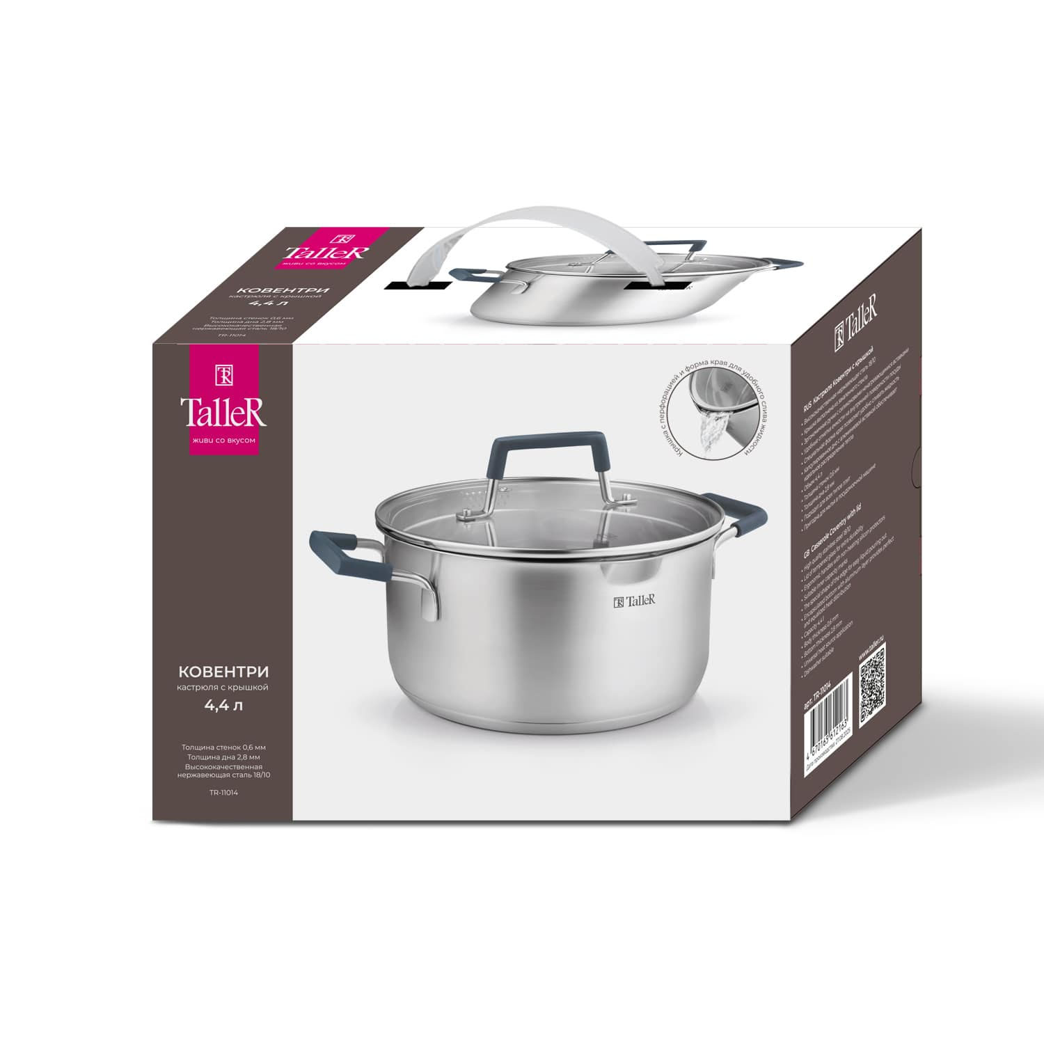 Посуду для приготовления пищи, столовую и барную посуду можно выгодно и удобно купить в Воронеже в магазинах «Всё для дома». Один из лучших представителей категории - Кастр.TalleR TR-11014 4,4л, отличающийся высоким качеством и доступной ценой. Ознакомиться с ассортиментом посуды можно на сайте интернет-магазина vdd36.ru