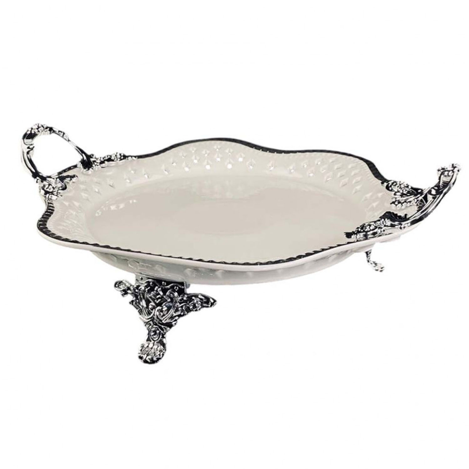 Блюдо 28см 205-915 на ножках с ручками ATLANTIS в под.уп.(х8)Фарфор