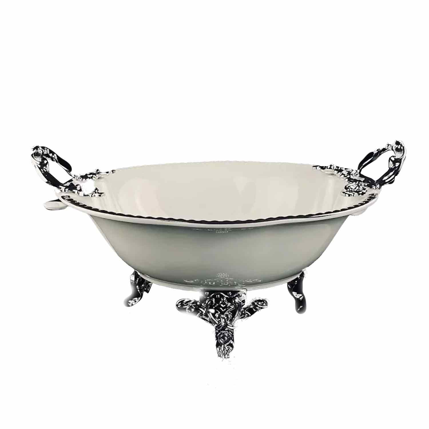 -Блюдо 205-928 глубокое Atlantis 25см на ножках с ручками фарфор п/у
