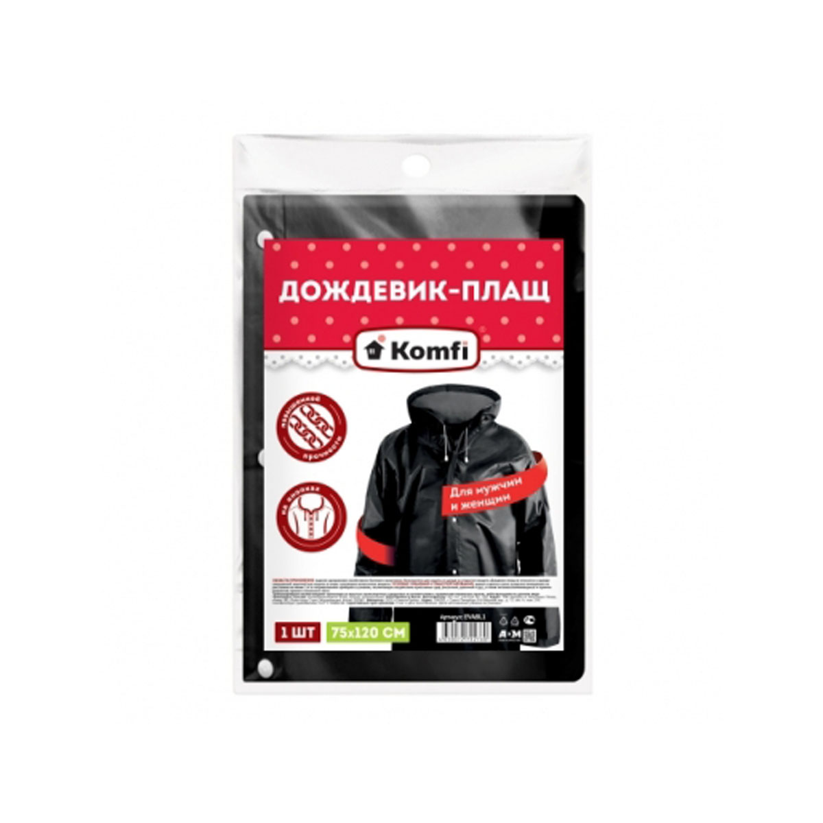 -Дождевик черный с капюшоном (на кнопках) EVA EVABL1