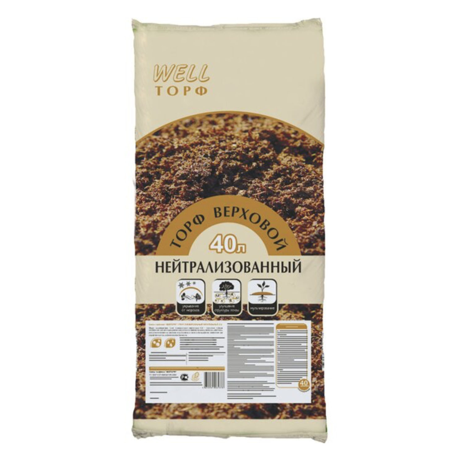 -Торф "Верховой нейтрализованный" 40л WELL "Велторф"
